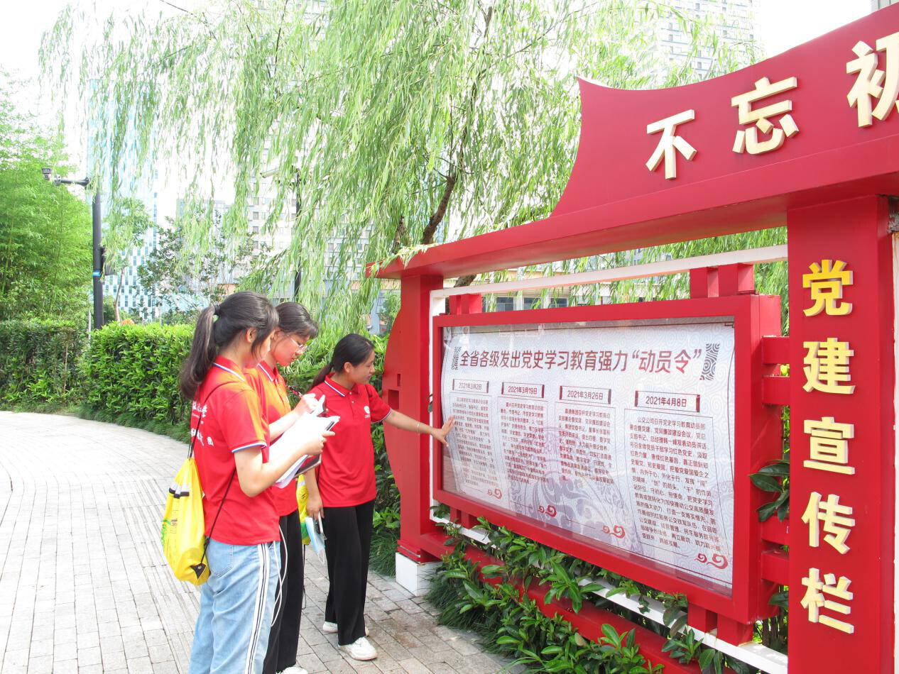 “学百年党史”社会实践团队来到中国公交行业红色教育示范基地,联合开展企业红色文化讲座,并在该公交车站附近分发调查问卷,随街调查路入党史学习教育情况。