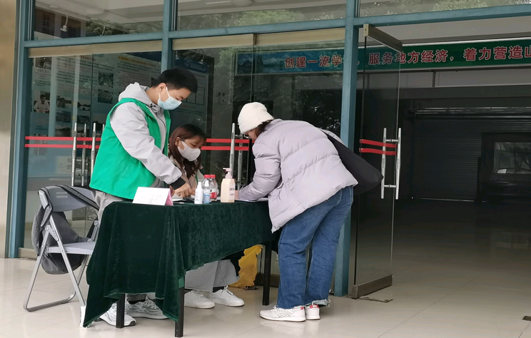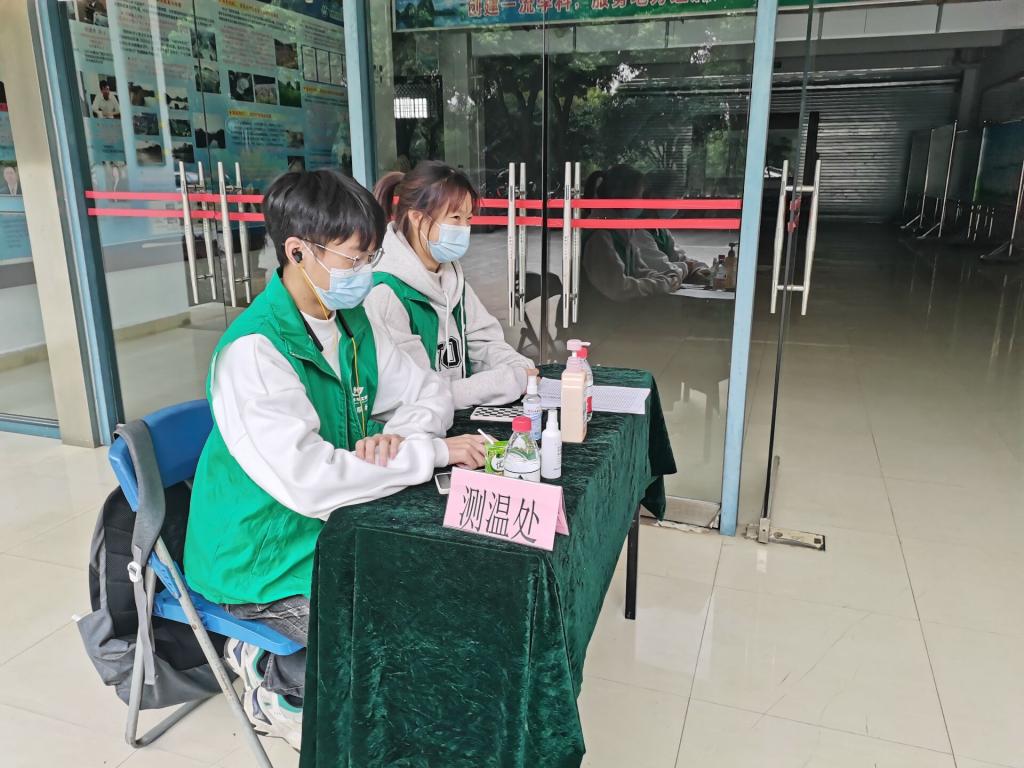 每天招募10名志愿者在九栋清和楼设点为进出人员进行体温测量、基础消毒等工作。