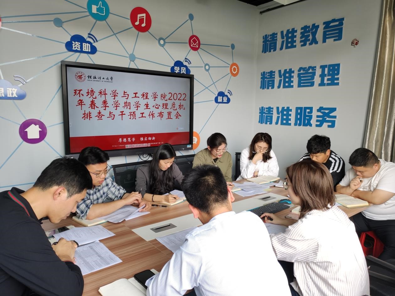 在雁山校区12408大数据工作室召开2022年春季开学初学生心理危机排查和干预工作布置会。会议由学院党委书记姜子亮主持,全体辅导员参加会议。