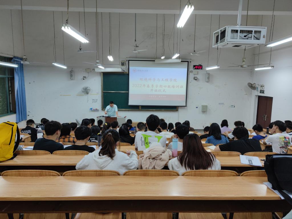 在雁山校区07118教室举行环境学院2022年春季学期大学英语四级培训班开班仪式,学院学工办相关老师参加此次开班仪式。