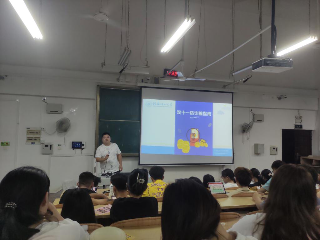 各年级辅导员就双十一”期间易发的校园网络诈骗案例入手,为学生详细介绍各种诈骗类型,重点引导学生形成健康的消费观念。对学生熟悉的网络购物过程中,诈骗分子利用学生的退换货的需求,通过假扮客服聊天、贷款转账、中奖红包等常用的骗术进行防诈骗宣传,提醒同学们提高安全防范意识,时刻保持警觉性,有任何现金支出的情况都要第一时间联系辅导员。