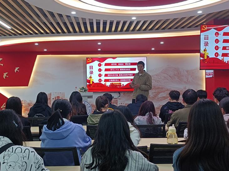 在6栋宿舍明园一站式社区——思政大讲堂开展以“以健康的身心 迎接新的学期”为主题的心理健康教育活动。本次活动由学院党委副书记郝文佳老师主持。