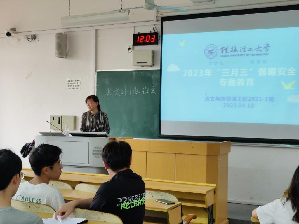 2023年“广西三月三”放假学生安全教育管理工作,提高学生的安全防范意识,切实防范交通事故、森林火灾、溺水及各种意外事件的发生。近日,环境学院以班级为单位组织全体本科生共上一堂“三月三”假前安全教育主题班会。