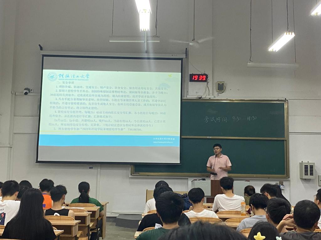 为进一步加强学院暑假留校学生安全防范意识,提高同学们的避险能力,确保留校学生度过一个愉快、安全、有意义的假期。近日,学院在雁山校区06508教室,组织开展了环境学院2023年暑期留校学生安全教育大会。