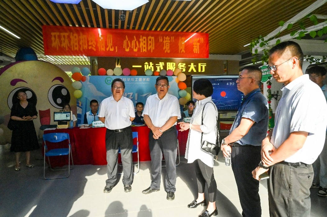 此外,学院以“绿色迎新”为主题,为新生设计制作了环保主题大礼包,包含环保袋、宣传页、蒲扇等物品,同时将迎新元素与专业特色进行融合,以 “青山绿水共为邻,美丽中国环院行”为主题对迎新现场进行布置并设置部分环保科普游戏,为新生科普环保知识,将迎新工作与学科文化有效结合。