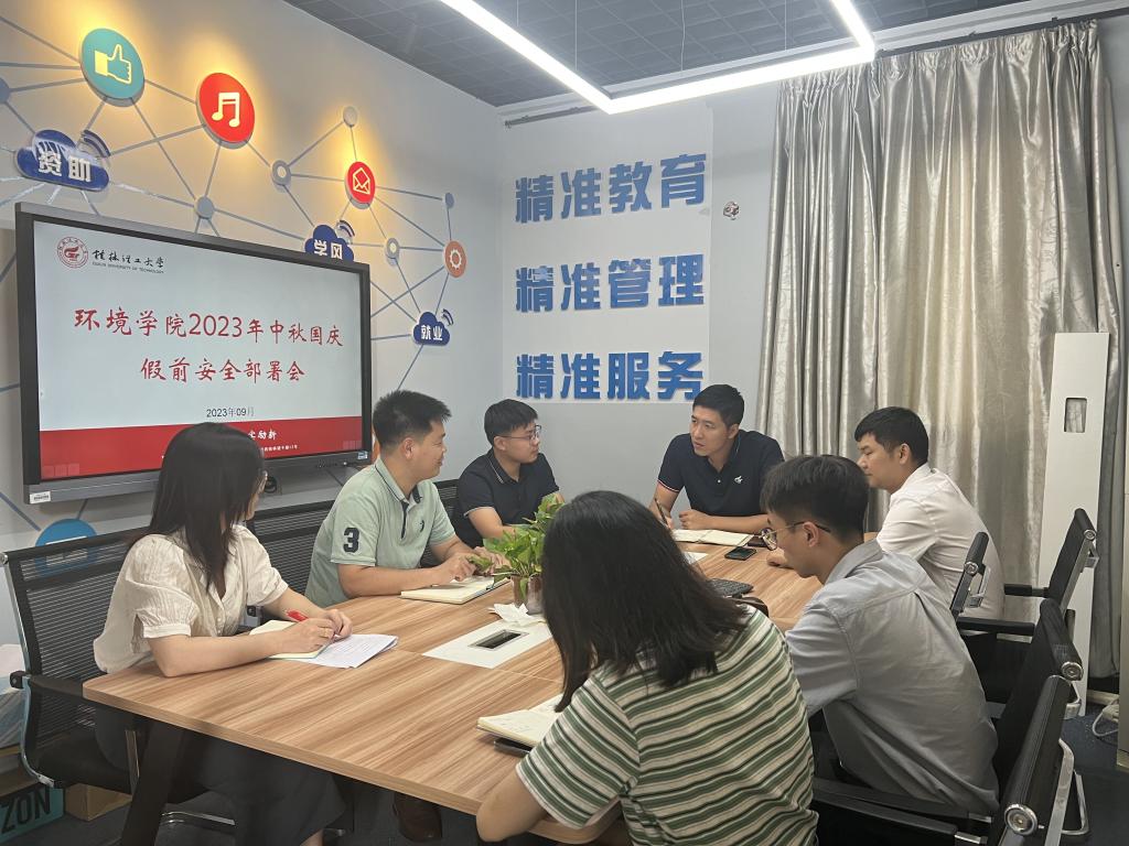在中秋、国庆假期来临之际,为提高全院学生的安全意识,进一步做好假期安全防范工作,环境学院于9月26日在雁山校区萃华楼12408组织召开了中秋国庆假前学生安全稳定工作部署会。会议由学院党委副书记郝文佳主持,学院党委书记姜子亮及全体专兼职辅导员出席会议。