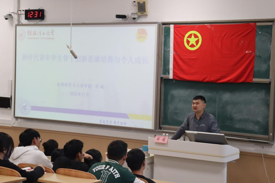 在第二讲中,刘砥老师首先为学生骨干详细讲解了新时代青年学生创新思维培养的重要意义,并介绍大学生“三大赛事”的内容及政策。通过分享校内优秀学长学姐在创新创业和学术研究领域的成功事迹,更加诠释了青年学子要敢闯敢拼,不断开拓进取。接着,刘老师详细阐述了学生骨干个人成长所需具备的能力。他强调,创新力是一种突破现状、不走寻常路的魄力,是勇于超越自我的能力。通过本期青马班培训,黑料吃瓜