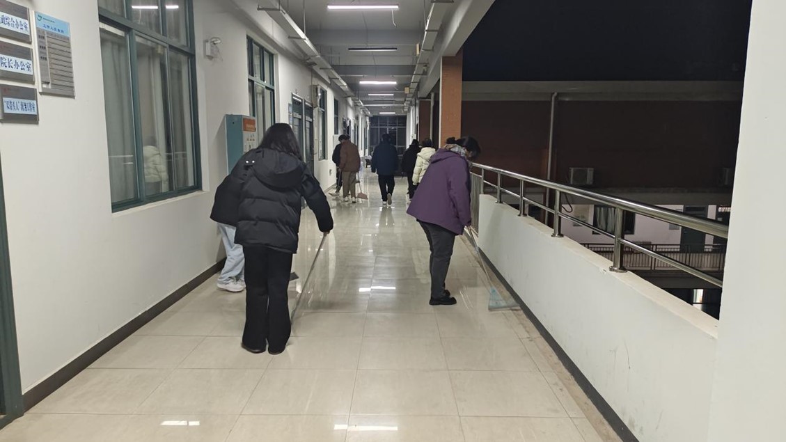宣讲结束后,学院30余名志愿者分为五组,在12栋及周边区域开展环境卫生清扫志愿服务。志愿者们分工协作,重点对公共区域、周边绿化带及主干道等区域进行彻底清理。大家手持扫帚、抹布等工具,对卫生死角进行集中整治。尽管春寒料峭,但志愿者们热情高涨,以行动诠释劳动之美,用汗水浇灌文明之花。经过一个多小时的辛勤劳动,楼栋环境焕然一新。
