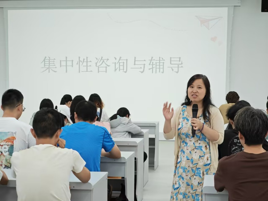 于2025年6月11日下午成功举办集中性咨询与辅导活动。活动由心理咨询中心谭咏梅老师主讲,设置了集中时段讲解、互动问答环节,吸引了40名学生积极参与。