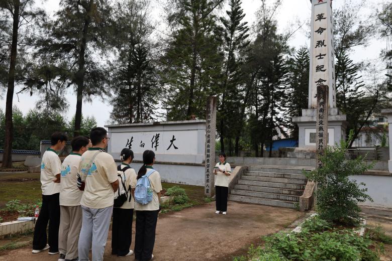 在广府会馆,实践团成员围绕红色历史脉络开展学习,通过参观馆内历史遗存、图文史料,系统聆听先辈抵御外侮、守护家园的革命事迹。斑驳的历史印记直观呈现了近代以来中华儿女的担当精神,成员们在驻足观察与交流研讨中深化历史认知,进一步筑牢“强国有我”的理想信念根基。随后,实践团赴陆屋革命烈士纪念碑开展祭扫学习。全体成员神情肃穆,认真研读纪念碑镌刻的英雄事迹,深刻缅怀革命先烈为捍卫国家领土完整、守护人民幸福安宁作出的牺牲。现场全体成员肃立默哀,向革命先烈致以崇高敬意,营造了庄重的爱国主义教育氛围。实践团成员廖辰晨表示,先烈们以热血铸忠魂的精神令人动容,作为青年学子,将把这份感动转化为实践动力,以实际行动践行初心使命。