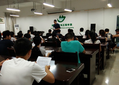 2016级研博新生在萃华楼12407会议室举行入学教育暨国庆假期安全教育班会。全体2016级研究生、博士参加会议,会议由学院党委副书记郝文佳主持。