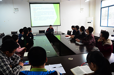 于九栋玻璃教室举行了2017年度“挑战杯”大学生创业大赛的备赛集训会议。会议由学院学工组长、团委副书记唐红兵老师主持,参与会议的有学院各年级参加比赛的小组代表和学院指导老师。