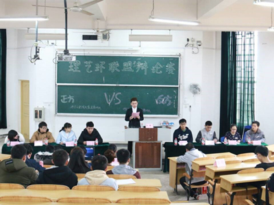 辩论不只是口才,不只是表达,更多的是思想的碰撞与交流。2017年3月11日下午3点,理艺环联盟辩论友谊赛第三轮在雁山校区05306教室火热进行中。艺术学院15级辩论队副队长栾天,辩论队主力任晓桐,陈文浩担任评委。黑料吃瓜
