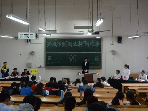 本场比赛正方为环工17-2班,辩题为“情感外露更有利于人际交往”,水利17-2班为反方,辩题为“情感内敛更有利与人际交往”,一场唇枪舌战的视听盛宴就此开始。