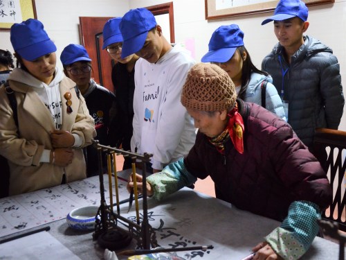 活动伊始,志愿者在工作人员带领下,以小组形式与老人进行互动。俗话说“家有一老,如有一宝”,在与老人们的交谈中,志愿者表示学到了很多书上学不来的东西。在活动期间,志愿者还给老人们送上了手绘的桂林风景画。一幅幅有着“老”桂林的字画,近一步拉进了老人与志愿者的距离,让现场气氛更加温馨。老人们为志愿者讲述自己的经历,看似有着时代鸿沟的两代人在房间里开怀大笑,其乐融融。道别前,志愿者和老人们合影留念,记录下这难忘的一刻。
