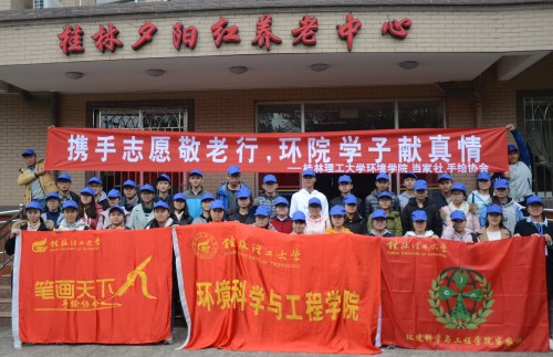 组织学生社团和志愿者赴桂林市夕阳红敬老院开展尊老爱老志愿服务活动。