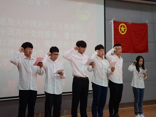 会议第一项,全体成员起立奏唱国歌,同学们精神饱满、歌声嘹亮。紧接着,宋老师为新发展团员颁发团员证和团徽,同学们进行了庄严的入团宣誓,并由新发展团员代表李恒发表感言。他表示作为一名新时代的共青团员,要学会坚定理想信念,高举社会主义旗帜,坚持吃苦在前,享受在后的原则。讲话结束后,全体成员再次起立,共同奏唱团歌。