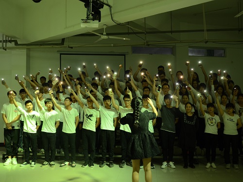 比赛正式开始后,参赛班级依次上场,整洁统一的服装在彩灯的照耀下显得格外耀眼。伴奏缓缓响起,参赛班级倾情演唱,歌声动人。台上的同学们异口同声,唱出了青春,唱出了激情,歌声震撼着耳膜,撼动着听众们的心,回荡在整个比赛现场。现场不仅歌声嘹亮,而且花样繁多,有红军长征回忆录,也有红色经典与现代舞的结合,独特的男女生领唱,以及在整体布局与一些细节上的独树一帜,令人眼前一亮,也赢得了评委的青睐。