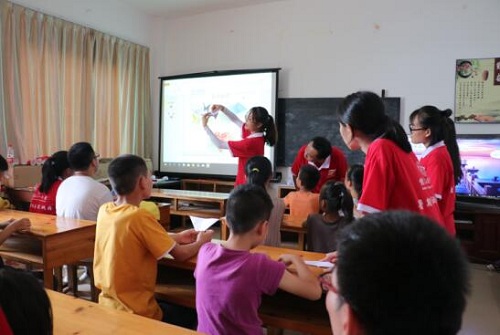 7月16日中午团员们经过简单的就餐之后,便立刻来到了文化宫开始布置会场,因为同学们都是第一次支教,都显得有些羞涩与紧张,害怕自己上不好课又或者小朋友们不喜欢自己,但更多的是对于支教行动的期待。小朋友如同一个个小天使一般携带着欢声笑语步入了教室,因为小朋友们的欢笑声,团员们心中的紧张也逐渐消退,热情的引领小朋友们入座,大家相互亲切的交谈,因为不认识产生的小小隔阂也烟消云散,因为小朋友大多数都已经5年级了,所以课程的开展还比较顺利,虽然有个别比较皮的小朋友,在团员温柔又不失严肃的指正下,支教活动还是比较顺利。