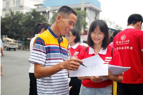 赴永福建设社会主义新农村调研暑期社会实践团队在苏桥镇中心三岔路口进行设点,开始了学院“环保观念入人心”的主题宣传。