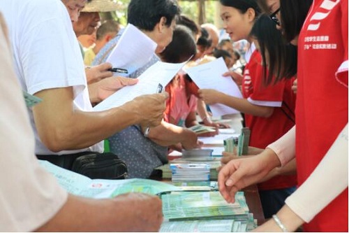 本次活动由永福镇团委办公室提供场地、桌子与凳子,宣传活动地点临近永福镇风雨桥与凤山广场,人流量巨大,实践团队刚刚布置好场地,就吸引来了许多市民,纷纷询问此次活动详情。此次活动通过问卷调查的形式调查小镇居民的环境保护意识及对环保知识的了解,并通过发放绿色生活指南、环保知识手册、环保法、公民节能减排宣传手册、“袋袋相传”环保袋, 引导广大人民群众贯彻绿色发展、绿色生活的理念,宣传‘绿水青山就是金山银山’的环保观念。