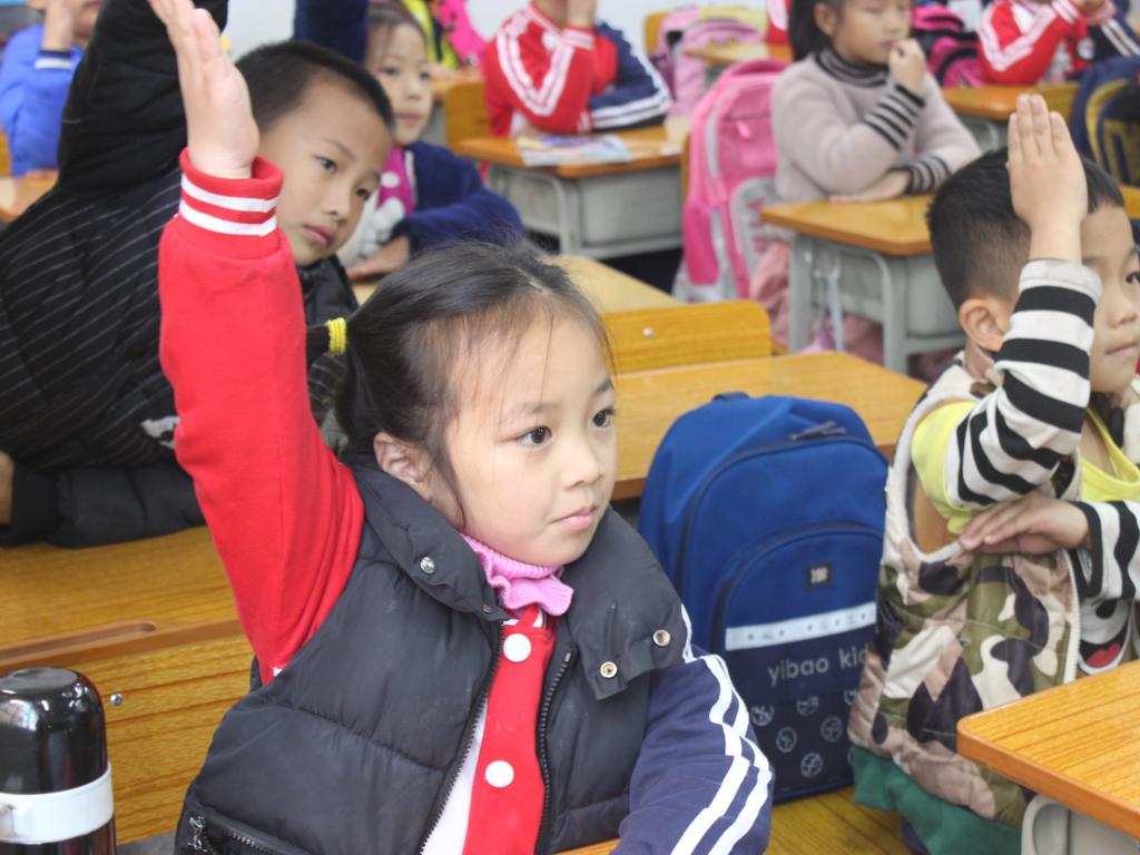 当天下午两点,学生志愿队伍到达君武小学。经过简单的熟悉校园和任务分配后,本次支教活动有序拉开序幕。志愿者分成了四组队伍,分别面向一年级1班,一年级3班,三年级1班和四年级2班。开始时,小朋友们略显羞涩,在志愿者讲解环保PPT并一起观看环保动画视频后,小朋友们热情高涨,与志愿者们的相处更加融洽。随后,志愿者们对小朋友进行了一问一答的环保知识游戏,对回答问题的小朋友分发了小礼品。在举手抢答的过程中,小朋友们对垃圾分类、保护环境有了进一步的认知,学到了丰富的环保知识,课堂氛围融洽。为使黑料吃瓜