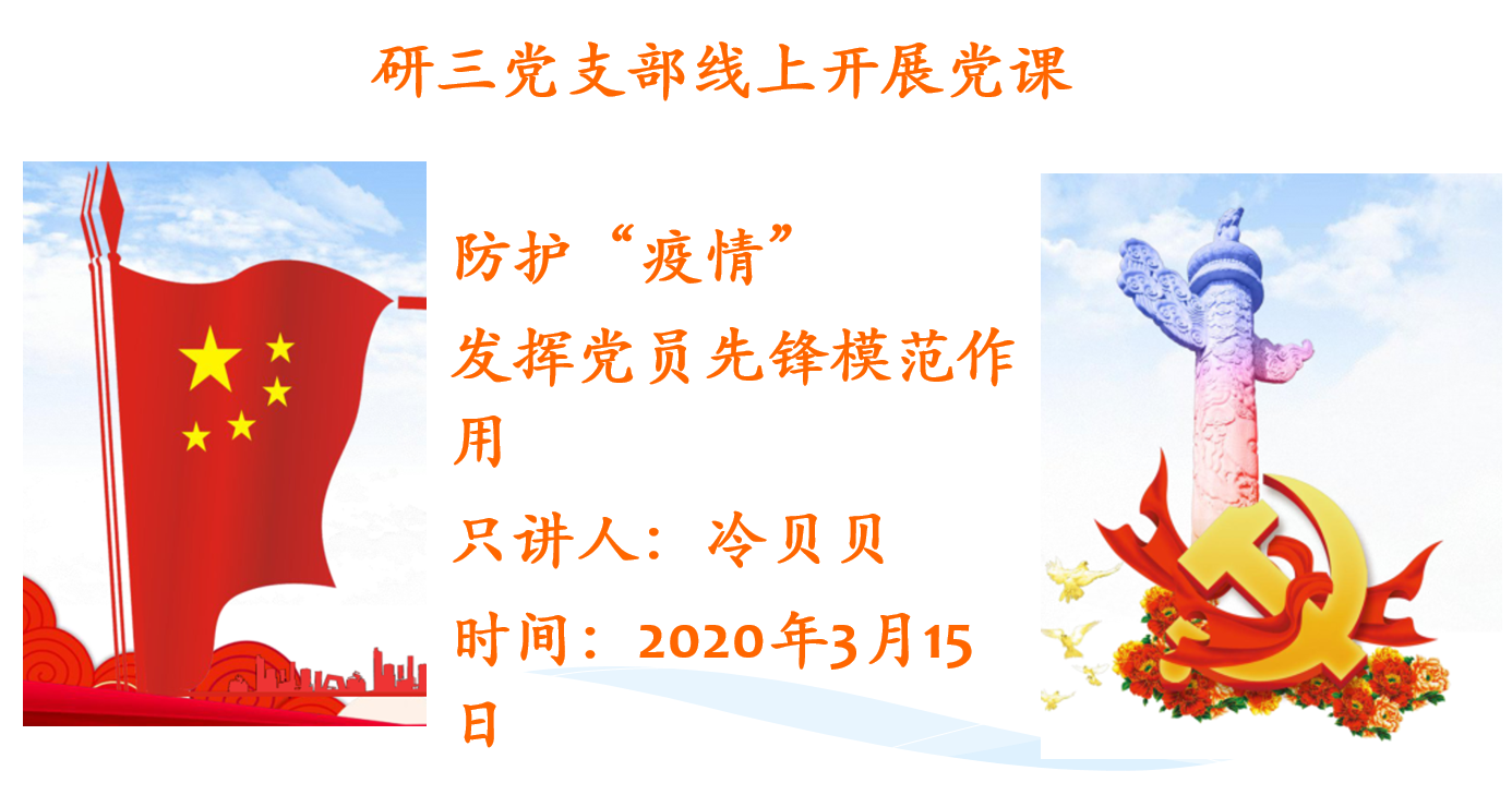 研三党支部通过腾讯课堂线上开展了“疫情防护,发挥党员先锋模范作用”的专题党课,培训班全体入党积极分子聆听了专题党课。
