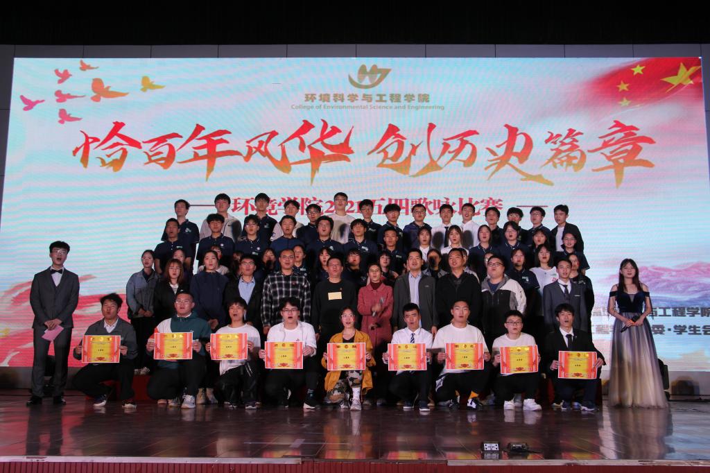 接着,各个参赛班级分别以朗诵和合唱的形式给观众带来了一场弘扬五四精神的视觉盛宴,其中环工20实验班一曲《我们都是追梦人》的合唱展现了青年学生应该树立远大理想,敢于追梦,不怕挫折的精神;给排水20创新班一首《沁园春·长沙》的朗诵展现了领袖毛泽东对青年时代革命斗争生活的回忆,抒写出革命青年对国家命运的感慨和以天下为己任,蔑视反动统治者,改造旧中国的豪情壮志,也让青年学生充分认识到老一辈革命者的艰辛不易和伟大理想。随后进行了“红歌猜猜猜”的猜歌名游戏环节,老师和同学们积极参与与抢答,并对猜到的红歌进行了一小段的演唱,加深了老师同学们对红色文化的了解。最后,所有领导和老师为本次比赛获奖班级颁奖并合影留念。