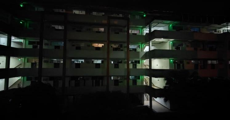 5月11日晚活动期间各工作人员分布在一号组团各楼层之间,用手机相机记录熄灯情况。参赛的各宿舍都按要求,在活动规定时间内熄灯,过程中也不曾亮灯。除参加活动的宿舍按照要求熄灯之外,许多未参加活动的宿舍被带动,主动熄灯。