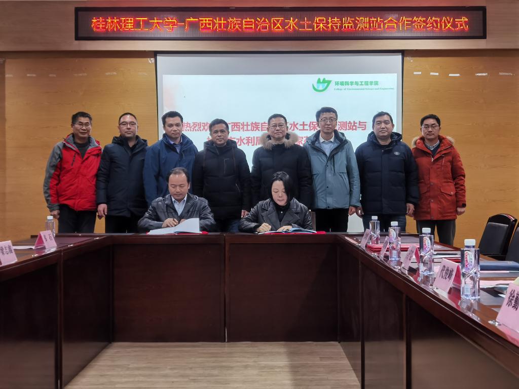 与广西壮族自治区水土保持监测站(以下简称“区水保站”)合作签约仪式于屏风校区圆满完成。区水保站站长宁春鹏、副站长梁志鑫一行,学院党委书记姜子亮、院长曾鸿鹄,研究生院副院长代俊峰,桂林市水利局副局长陈金华,桂林市农田灌溉试验中心站党委书记冯广、站长粟世华参与签约仪式。