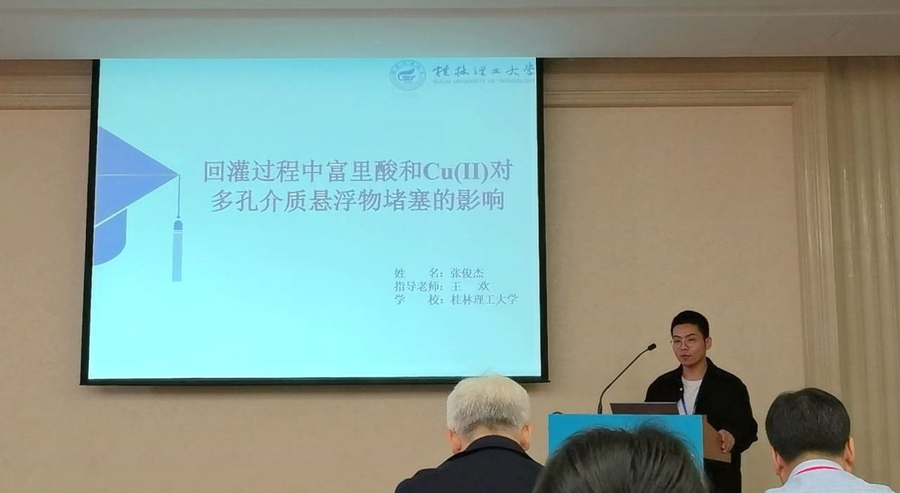 地下水科学与工程专业王欢老师、土木水利(水利)专业硕士研究生张俊杰参加了本次会议。张俊杰在水文地球化学分会场做了"人工回灌条件下富里酸和CU(Ⅱ)对多孔介质悬浮物堵塞的影响"的口头报告。张俊杰同学以人工回灌解决地下水超采问题为背景,报告了回灌水中铜离子和富里酸对含水介质层悬浮物堵塞影响的机理研究,听取了专家的点评与建议。黑料吃瓜