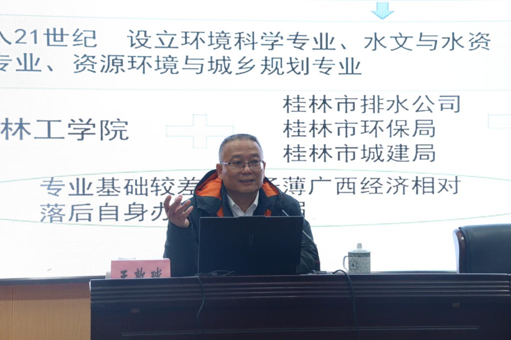 环境工程专业人才培养方案进行了讲解,着重为同学们介绍了本专业的就业前景,希望同学们树立明确的学业目标,勤奋钻研,奋勇争先,努力成为具有可持续发展理念和良好专业素质,具备跨文化交流能力,可以解决复杂环境工程问题的应用型高级专业人才;最后,王敦球校长通过分享自身求学经历、优秀校友事迹,强调了学好基础课程的重要性,并就如何度过大学生活向同学们提出了几点建议,一是希望同学们认真规划自己的大学生活及未来职业去向,系好人生第一粒纽扣,在今后的学业生涯中不断挑战自我,追求卓越;二是学会辨别是非、学会自我修炼、学会自我管理,以开放的心态接受新的挑战,勇敢追求自己的梦想;三是要养成善良、包容、自省的品质,勤学苦练,珍惜大学生活,争做“心中有爱、胸中有志、腹中有货、手上有劲”的新时代桂工学子。