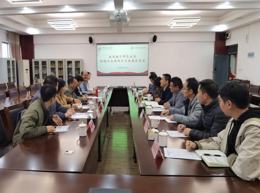的基本学术状况,重点阐述了学院在学科建设和科学研究领域所取得的成绩。她强调,环境学科的发展离不开各兄弟院校的强力支持和帮助,并衷心期望未来能与南宁师范大学生命科学学院展开更多深度合作。随后,韦东林、张新英从人才培养、学科专业、师资队伍等多个维度介绍了其学院的基本情况,并表明希望在科研项目申请、平台建设等方面与桂工环境学院增进交流与合作,学习先进经验,力求创新突破。