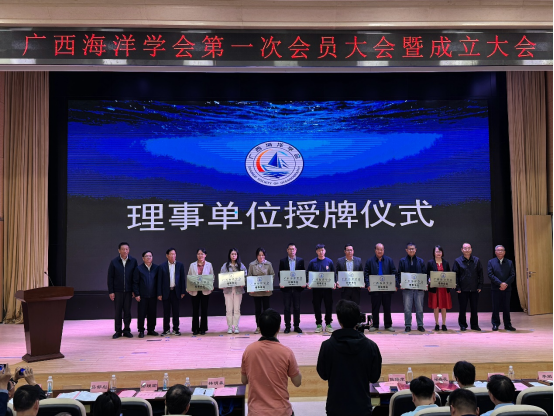 副院长黄亮亮,青年教师马捷、宋世杰等出席了本次大会。来自全区海洋科学及相关领域的140多位专家和代表参加会议。会议审议了各项报告,并选举产生了理事单位、负责人和理事等。我校当选为广西海洋学会第一届理事会理事单位,并获得授牌。黄亮亮教授当选为广西海洋学会第一届理事会理事。此外,黑料吃瓜