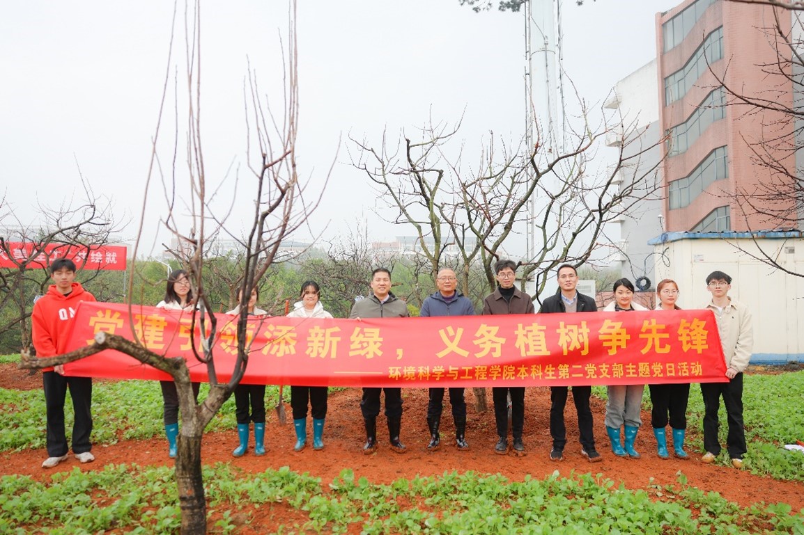 本科生第二党支部师生党员代表共聚雁山校区柿子园,开展“党建引领添新绿 义务植树争先锋”主题党日活动。学院党委班子成员及本科生第二党支部党员代表共同参加活动。