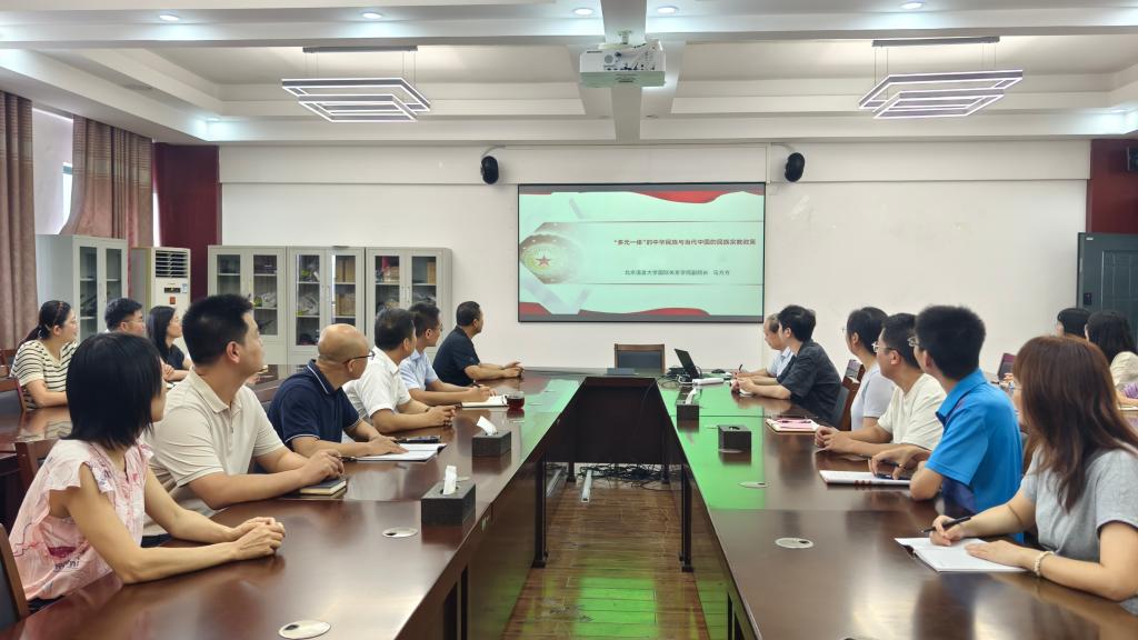 组织教职工在12407会议室集中收看2025年第二期师德大讲堂网络课程,专题学习由马方方教授主讲的《“多元一体”的中华民族与当代中国的民族宗教政策》。