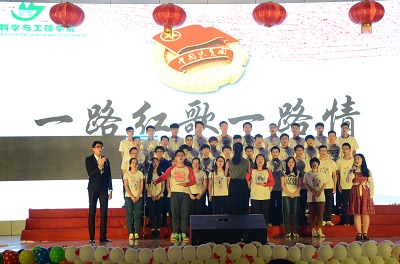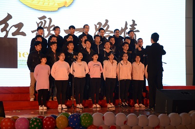 于雁山校区体育馆举行了五四班级歌咏比赛。学院党委书记王璐、党委副书记郝文佳、副院长李艳红、团委书记唐红兵以及各年级辅导员及各班班主任出席了本次活动并担任评委。