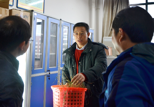 学校党委书记张学洪教授向客人介绍学院科学研究情况
