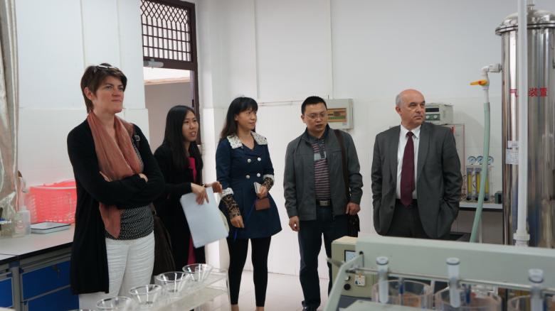 4月25日上午,法国萨瓦大学副校长Thierry Villemin教授及商学院院长Claire Salmon女士到黑料吃瓜 参观交流。学院游少鸿副院长、实验室李艳红主任和相关教师热情接待了来访客人,实地参观了水污染控制国家级实验教学示范中心、重点实验室和重金属植物修复示范基地。在参观考察过程中,双方就本科生和研究生的招生与就业、人才培养、实验和实践环节开设、实验室建设与管理等方面的工作情况进行了交流。