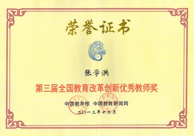 2013年12月14日,第三届全国教育改革创新典型案例推选活动颁奖典礼暨中国教育创新论坛在北京国家教育行政学院隆重举行,教育部副部长李卫红,中国人民大学、上海交通大学、南京大学、南开大学等国内著名高校校长,全国教育改革创新先行地区政府领导、教育局长、知名教育专家、一线优秀校长教师代表共计200余人参与本次颁奖典礼。