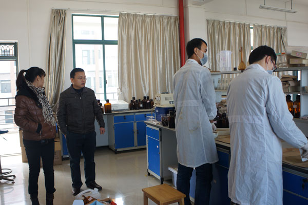 主管实验室副院长游少鸿和实验室主任李艳红及相关老师在雁山校区的教9楼、教12楼开展安全与卫生大检查。