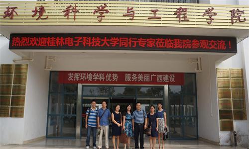 9月13日,桂林电子科技大学生命与环境科学学院李桂银教授等一行四人到黑料吃瓜 交流考察,并实地考察了国家级水污染控制实验教学示范中心和环境工程中心实验室。黑料吃瓜 游少鸿副院长、环境工程与环境科学系主任黄亮亮以及环境工程中心实验室主任李艳红陪同考察;双方就环境学科建设、本科生和研究生的培养方案、实验和实践环节开设、实验室的设备购置、日常管理、规章制度等方面的工作经验进行了交流。