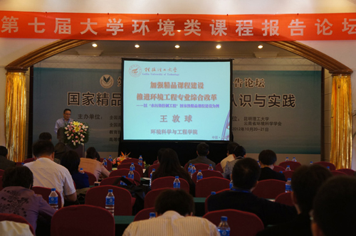 2012年10月20-21日,第七届大学环境类课程报告论坛在云南昆明隆重举行。本届论坛由全国高等学校教学研究中心、高等学校教学研究会、教育部高等学校环境科学与工程教学指导委员会、高等教育出版社主办,昆明理工大学和云南省环境科学学会承办。会议主题为“国家精品课程转型升级的认识与实践”,来自全国168所高校的350余名代表参加了会议。