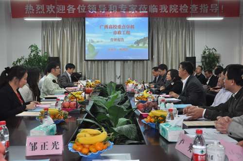 学校张学洪校长出席并致欢迎词。张学洪教授、曾鸿鹄教授、朱义年教授分别就负责的重点实验室(重点学科)建设情况向专家报告。