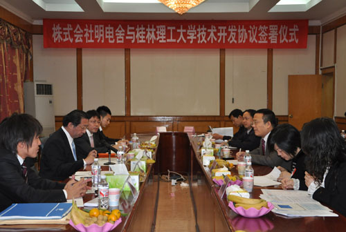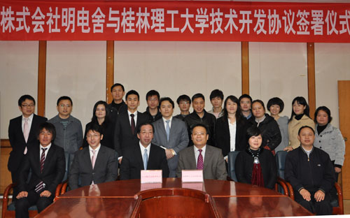 与日本明电舍株式会社的应用开发研究合同签署仪式在学校教八楼会议室举行。日本明电舍株式会社新规事业推进部部长加藤三千彦、新规事业推进部课长加藤秀生、新规事业推进部主任金森教明、新规事业推进部广濑仁、明电舍统括(上海)商贸有限公司李丹部长,院长王敦球教授、副院长曾鸿鹄教授、副院长方荣杰教授等中日代表出席签署会。学院部分教师及参与该项目的研究生列席会议。经过热烈地商谈,学院院长王敦球教授与日本明电舍株式会社新规事业推进部部长加藤三千彦分别代表双方在共同开发合同上签字,即“陶瓷平板膜组件在再生水与下水处理设备应用研究”项目正式启动。该项目将在我校的雁山校区建设中试规模中水回用设施,这也是继日本、新加坡的项目之后,第一次在中国开展陶瓷平板膜组件中试项目。此次共同开发合同的签署,将进一步推动黑料吃瓜