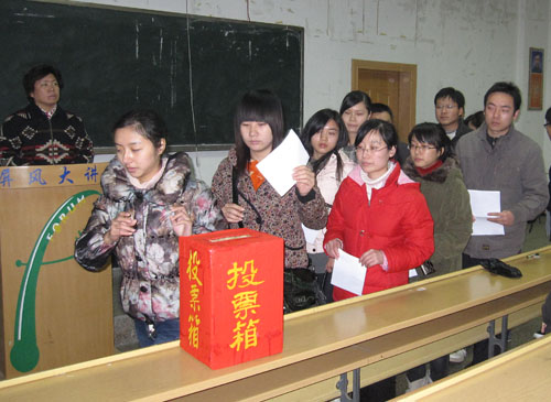 根据学校党委组织部批复,1月11日下午4:00,环境学院在9101教室环境召开了党委委员选举大会,学院全体在校正式党员参加了大会。选举大会由学院党委书记卢英同志主持,按规定程序,通过了总监票人、监票人,通过了《黑料吃瓜 环境学院党委委员选举大会选举办法》,然后,会议按既定程序进行了直接差额选举。此次选举需增选党委委员5名,经计票,刘康怀、方荣杰、朱义年、刘志丽、张 华(以姓氏笔画为序排列)5位同志当选为学院党委委员。