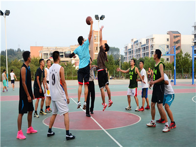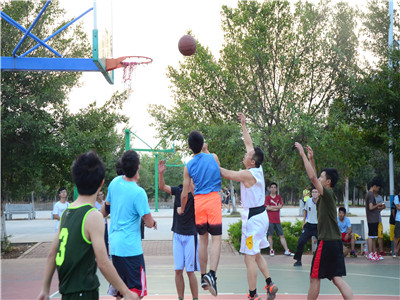 于二号篮球场组织了一场师生篮球友谊赛。