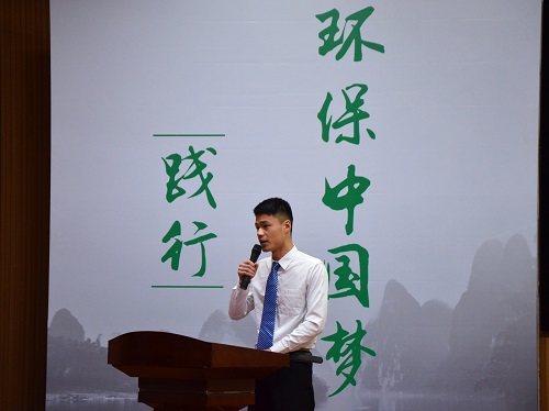 环境学院率先在广西开展“环保生活高校行”活动表示欢迎和感谢。环工14实验班陈强同学作为学生代表发起环保倡议,他呼吁同学们从身边小事做起,在垃圾分类和环境保护等方面贡献自己的力量。