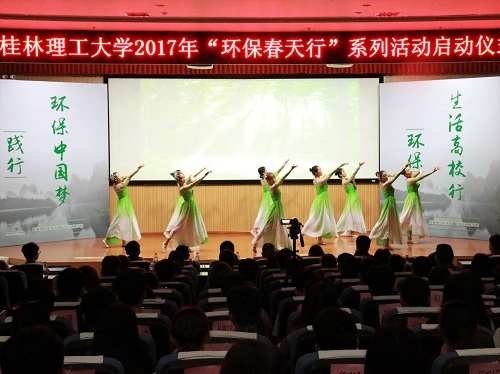 2017年“环保春天行”系列活动在雁山校区图书馆报告厅正式启动。出席启动仪式的领导和嘉宾有学校副校长王敦球教授、校团委书记周国桥、环境学院党委书记王璐、副院长游少鸿、李艳红、党委副书记郝文佳以及环保创客联盟项目代表何艾莉女士与李文亮先生,部分教师与学生代表也共同参与了本次活动。
