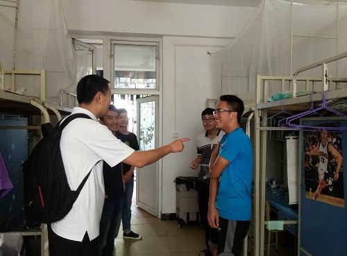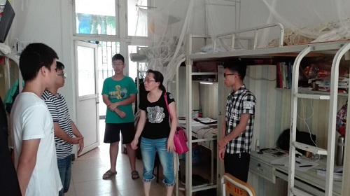 班主任在放假前深入学院学生宿舍进行安全、卫生突击检查和面对面安全教育。